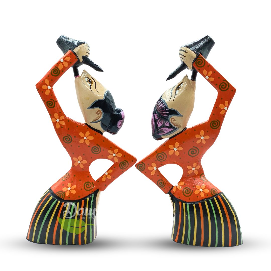 A Unique wooden statue made in Indonesia. using high Quality Wood and Handpainted with beautiful pattern. The statue came in a pair of man and woman